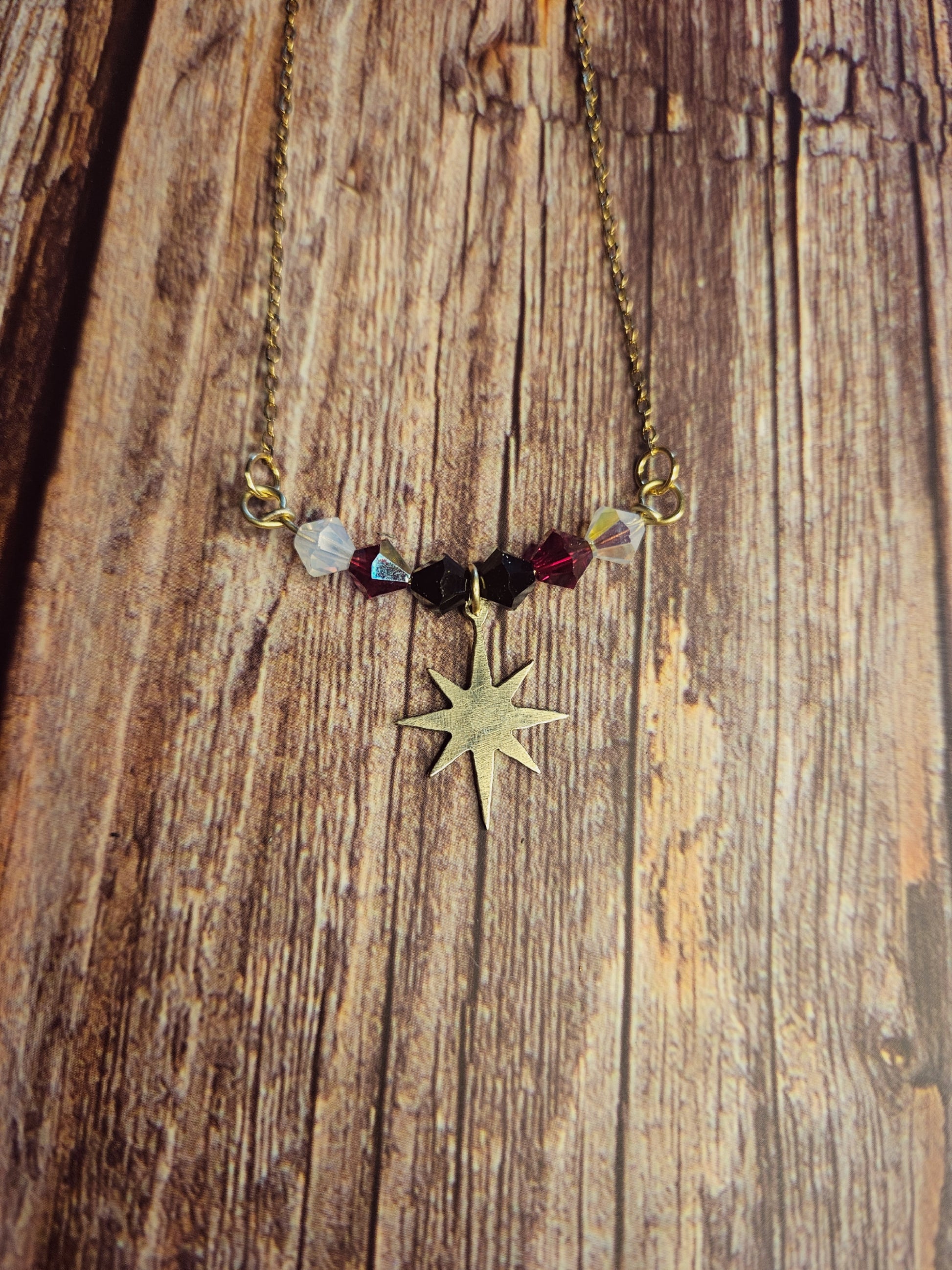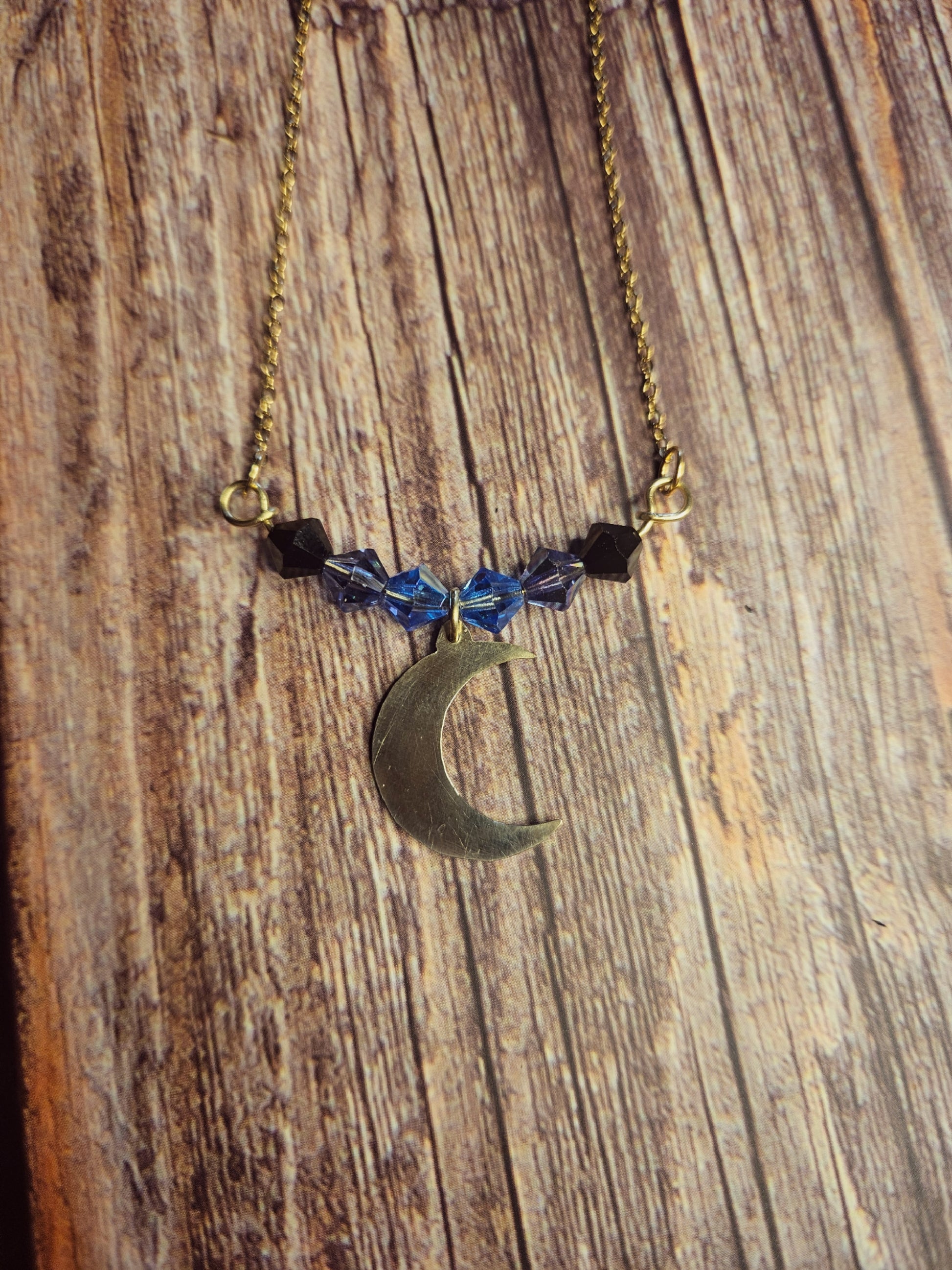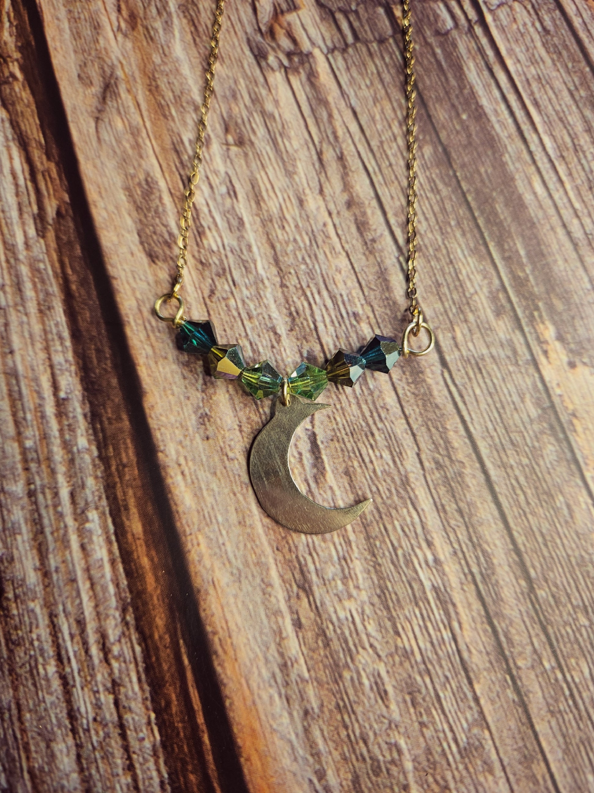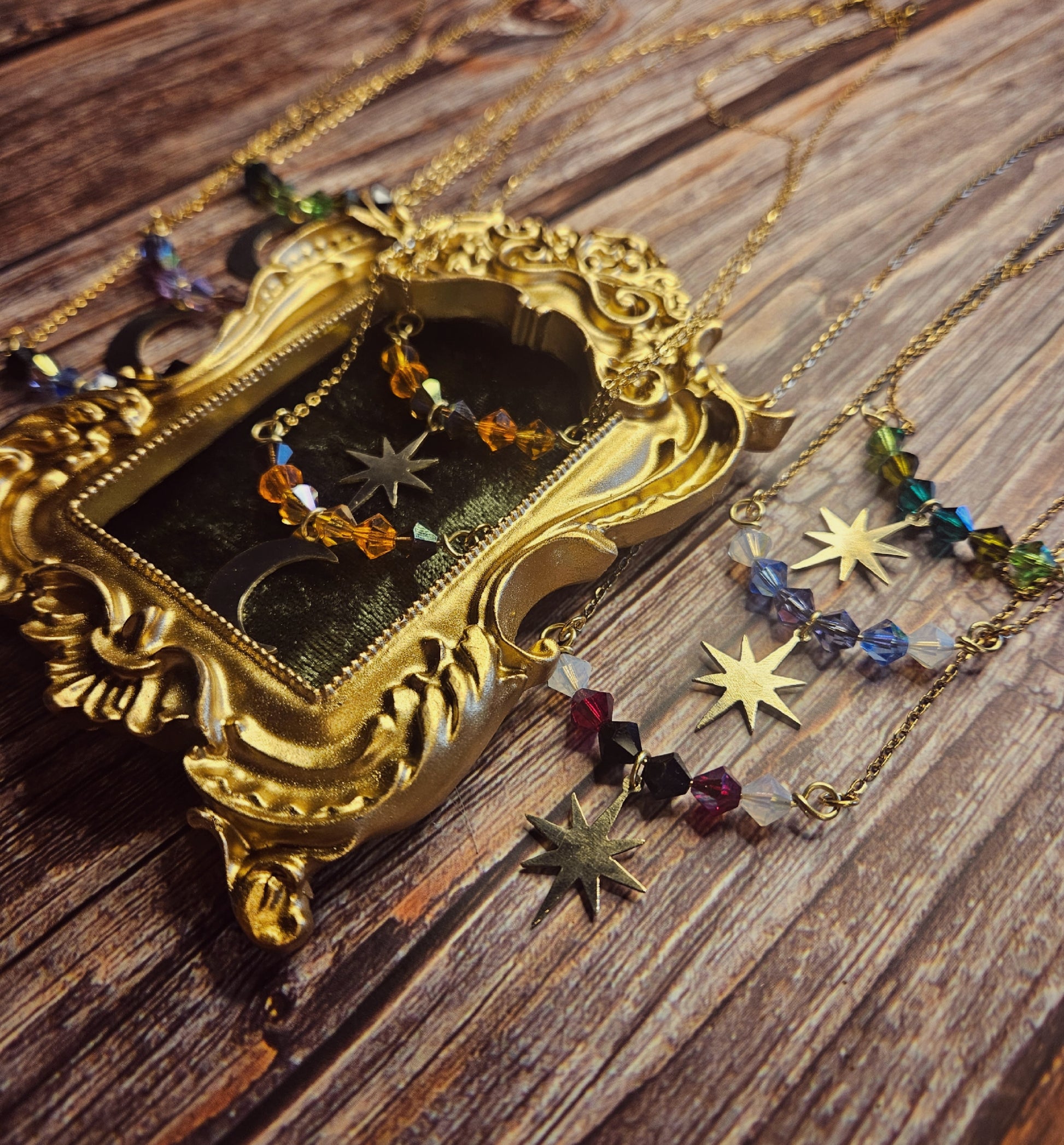 Entre lunes et étoiles façonnées à la main, ces bijoux mêlent la douceur du laiton à la lumière changeante des cristaux Preciosa, véritables fragments de ciel suspendus à votre cou.