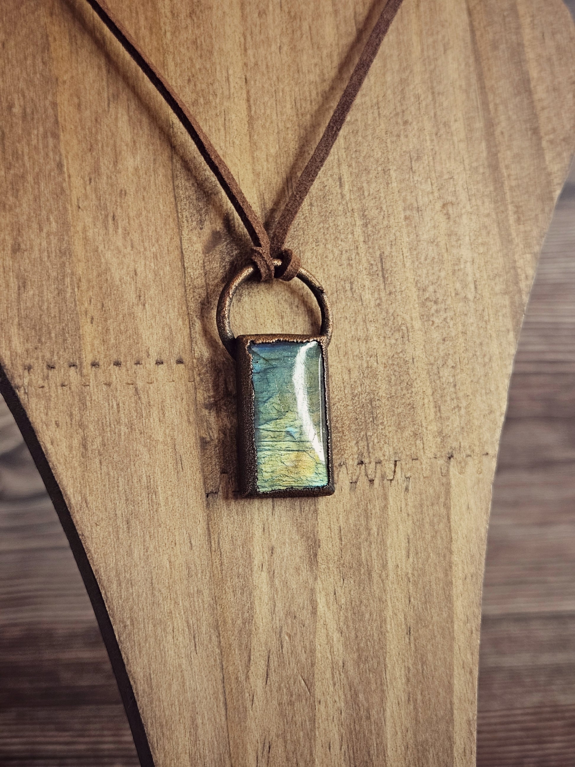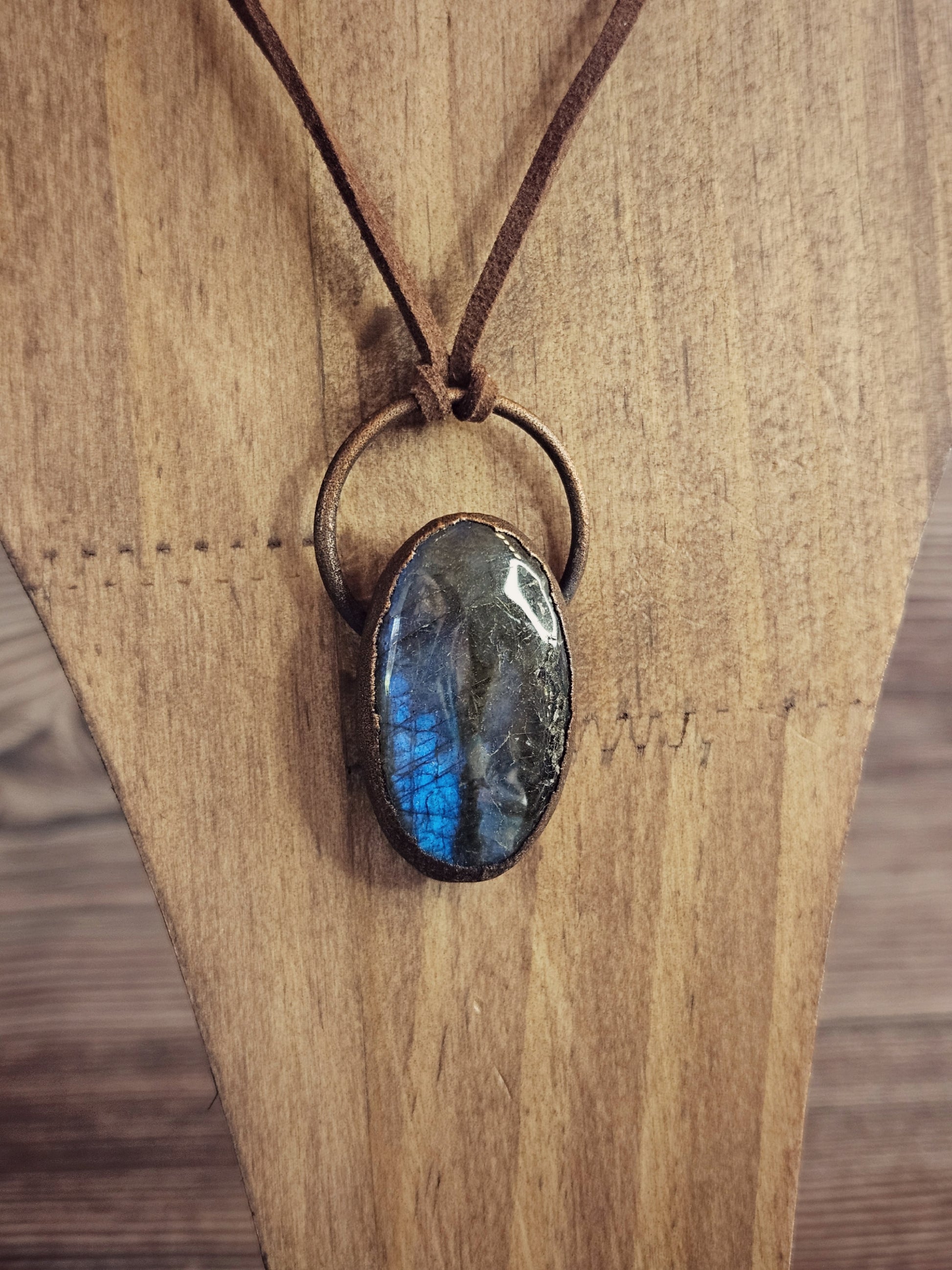 • Matériaux : cuivre (électroforming), pierres naturelles (labradorite, œil de tigre)