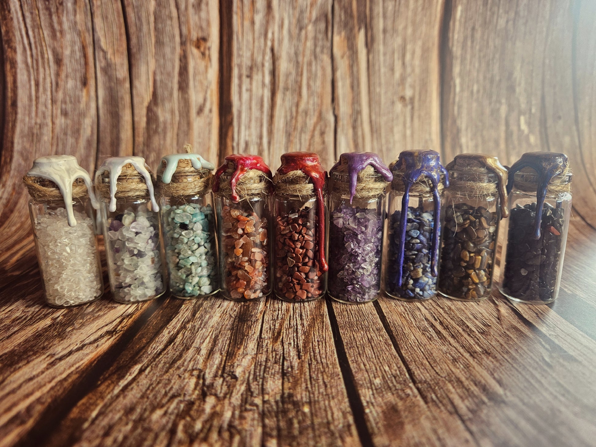 Chaque fiole devient comme un talisman miniature, à poser sur un autel, garder dans une poche ou offrir à quelqu’un comme une étincelle d’énergie et de symbolisme.