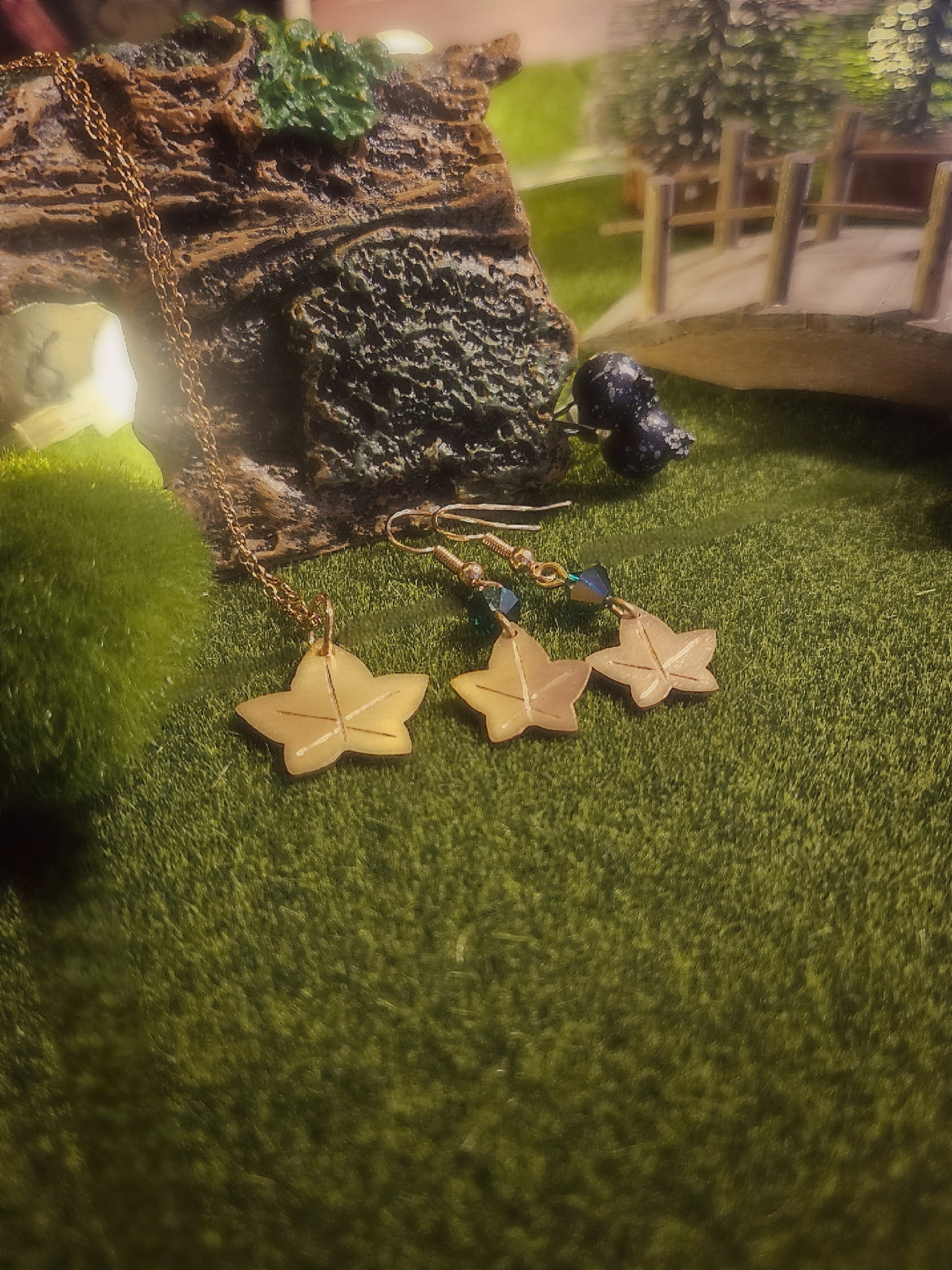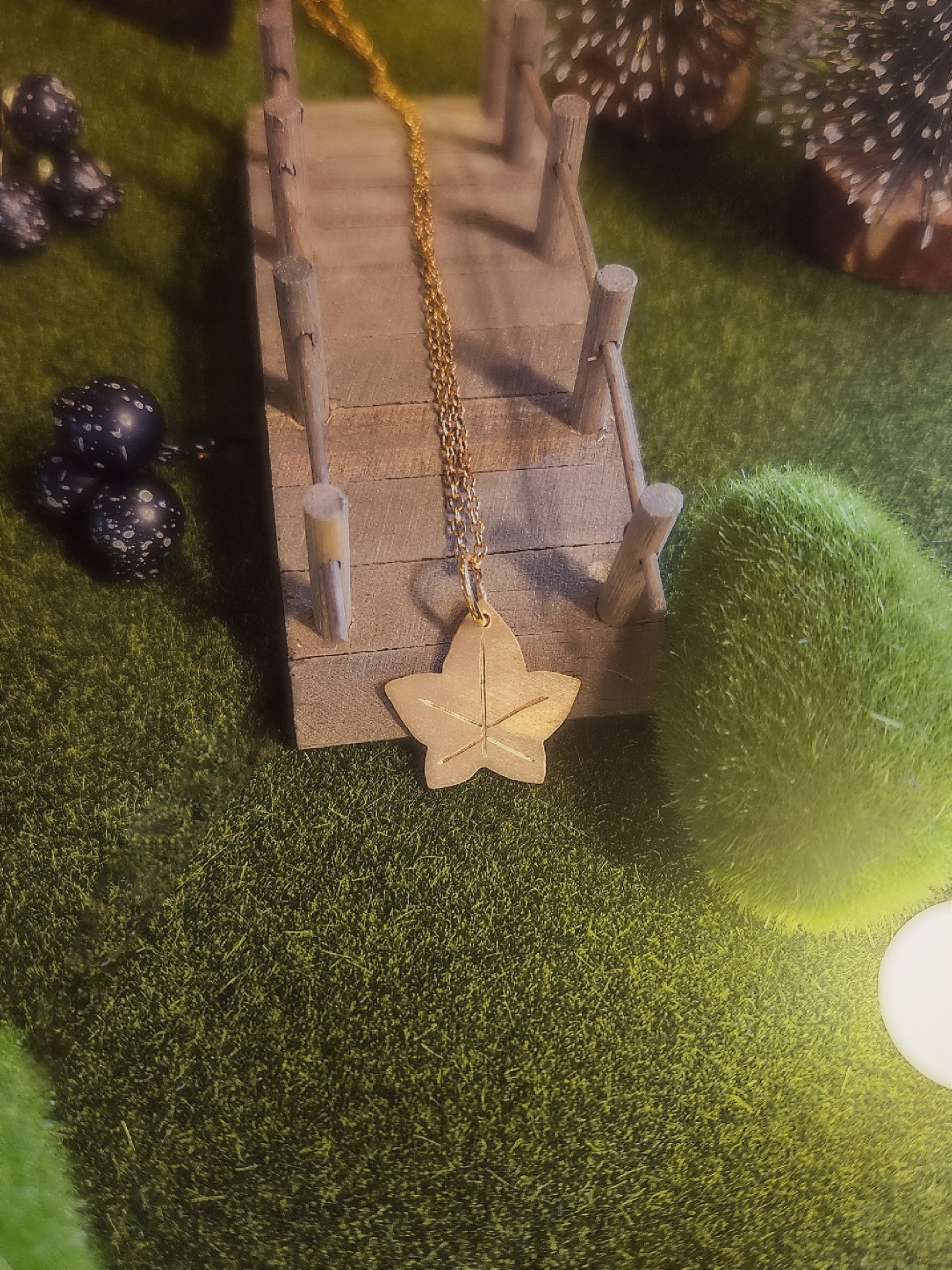 Une parure inspirée du lierre, plante de persistance et de lien, symbole d’attachement, de fidélité et de force tranquille. Chaque feuille est façonnée à la main en laiton, avec ses légères irrégularités qui rendent chaque pièce vivante et unique.